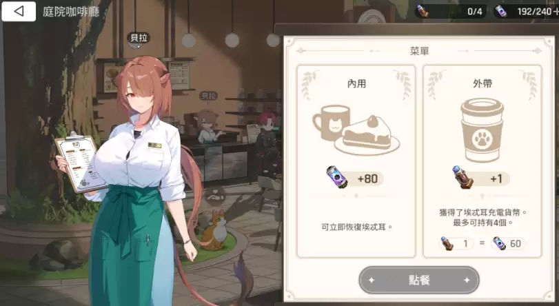 庭院咖啡厅就相当于专用补给站,可以轻松获取额外体力值。获取方式简单直接,既不需要完成复杂任务链也不用专门去打怪。在这里边喝咖啡边逗猫,不仅能放松心情,偶尔还会触发一些意外的小彩蛋。