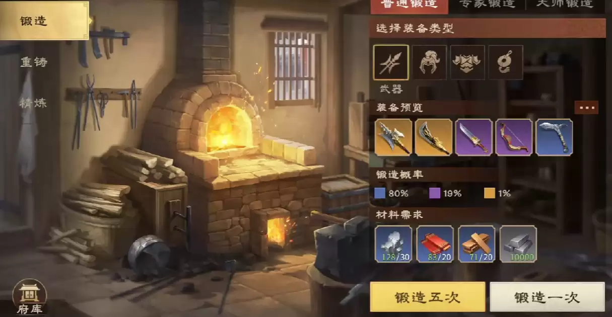 值得注意的是,玩家通过锻造系统获取武器的强度,实际上与锻造台等级密切相关。游戏前期建议先将锻造台提升至三级以上,以获得打造金色装备的能力,随后再进行批量锻造。