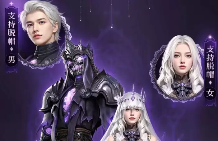 此次万圣节主题活动将于10月23日正式上线,持续至11月7日。两套主打时装风格迥异,分别诠释了神秘肃穆与童趣搞怪的双重氛围。"净罪颂祷"以宗教幻想为设计灵感,女性角色身穿洁白长裙,搭配冰晶王冠与轻盈头纱,袖口点缀蕾丝,幽火装饰更添诡谲气息;男性角色则身披银色护甲,胸口燃起紫色火焰,头戴荆棘王冠,尽显审判使者的威严气质。