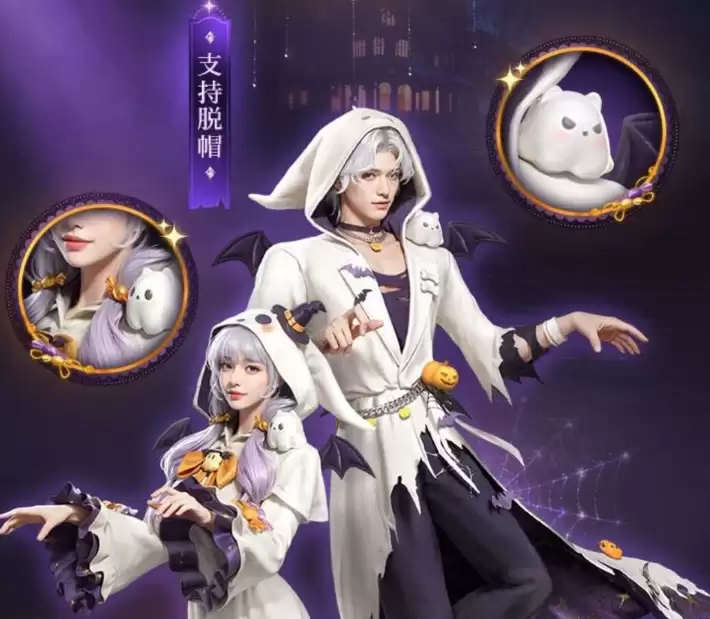 另一套"床单小鬼"则走俏皮路线,还原经典万圣节形象。幸存者可披上柔软白床单,头顶南瓜灯,佩戴系有蝴蝶结的小帽子,化身捣蛋小鬼。时装支持切换戴帽状态,方便展示发型与面部装扮,无论是参与讨糖行动还是恶作剧,都极具节日代入感。