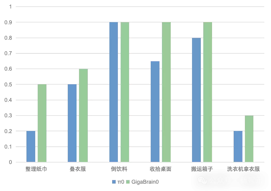 GigaBrain-0通过子目标拆解和机械臂末端轨迹输出,大幅提升了在开放场景中的任务规划能力。具体体现在: