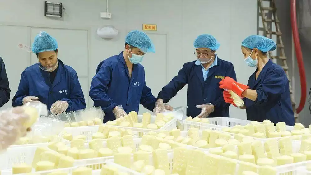 当时,庆元的黄粿产业仍停留在自产自销的初级阶段。面对质疑声,吴祥宝以“傻宝”为品牌注册商标,将名字中的“宝”与外界评价的“傻”巧妙结合,寓意“憨厚、诚实、可靠”。他坦言:“这条路没人走过,传统手工捶打要改成流水线生产,设备都得自己研发。”最初生产的黄粿因口感不佳被村民否定,他反复调试配方;销路受阻时,又带着产品辗转各类展会推广。2019年,“傻宝”黄粿获评“丽水老字号”,销量逐步攀升。