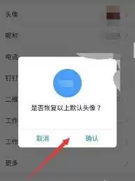 点击“默认头像”按钮后,系统会提示您即将恢复到默认头像。确认操作后,头像就会立即恢复到钉钉初始设定的样式。