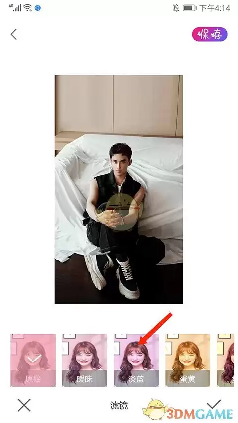 第三步,点击下方菜单中的【滤镜】按钮,左右滑动找到【淡蓝】等多种风格,选中即可实时预览效果。