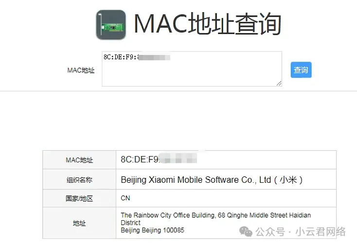 通过路由器的ARP表项,可以查到对应设备的MAC地址: