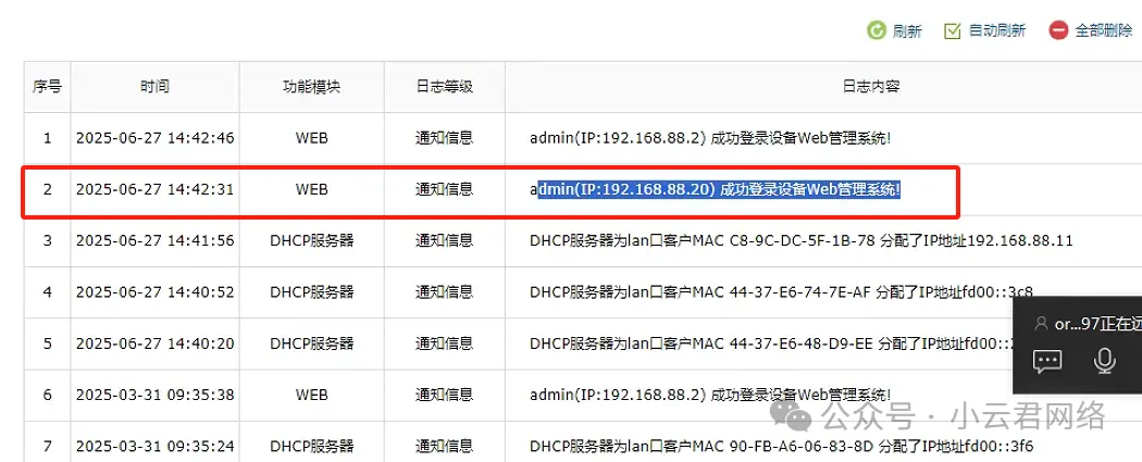 嗯?仔细一看,该时间点有陌生IP登录过设备(这个地址并非管理员的电脑)。我们需要进一步确认登录者的身份。