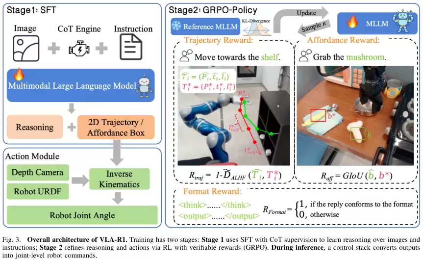 整个VLA-R1的训练和工作流程分为两个核心阶段。