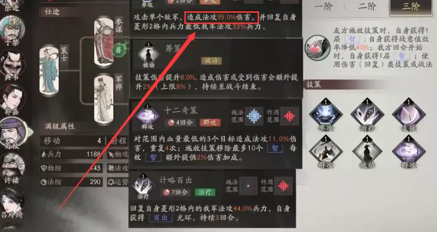 不过,最值得推荐的还是与荀彧等谋士搭配。由于杜氏的治疗恢复量不算很高,主要强项在于法术增益,因此她能有效辅助法术系武将,从前期平稳过渡至后期。到了后期,杜氏可被卞氏所替代。