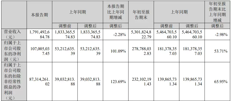 10月30日,利亚德发布第三季度财务报告。财报数据显示,本季度公司实现营业收入17.91亿元,同比小幅下降2.28%;实现归属于母公司的净利润1.07亿元,较去年同期大幅增长101.09%。