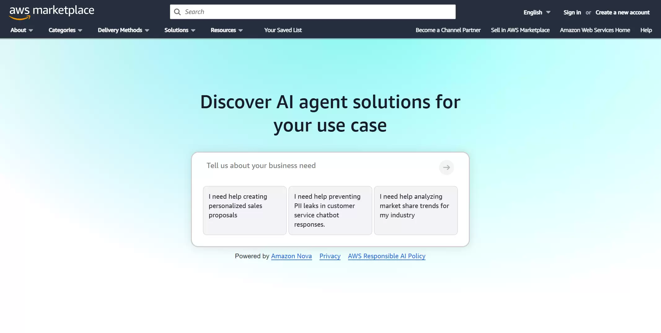 面对平台上日益丰富的选择,如何快速精准地找到合适的解决方案成为客户的新挑战。对此,亚马逊云科技引入了由人工智能驱动的搜索功能,用户只需用自然语言描述具体业务场景,AI 便能智能推荐相关的解决方案,有效提升了用户的选择效率。