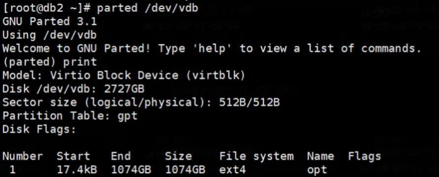 parted /dev/vdb print