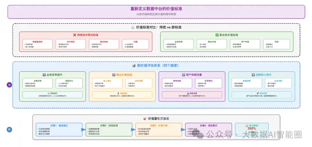 经过深入思考,我认为需要重新定义数据中台的价值评价标准。