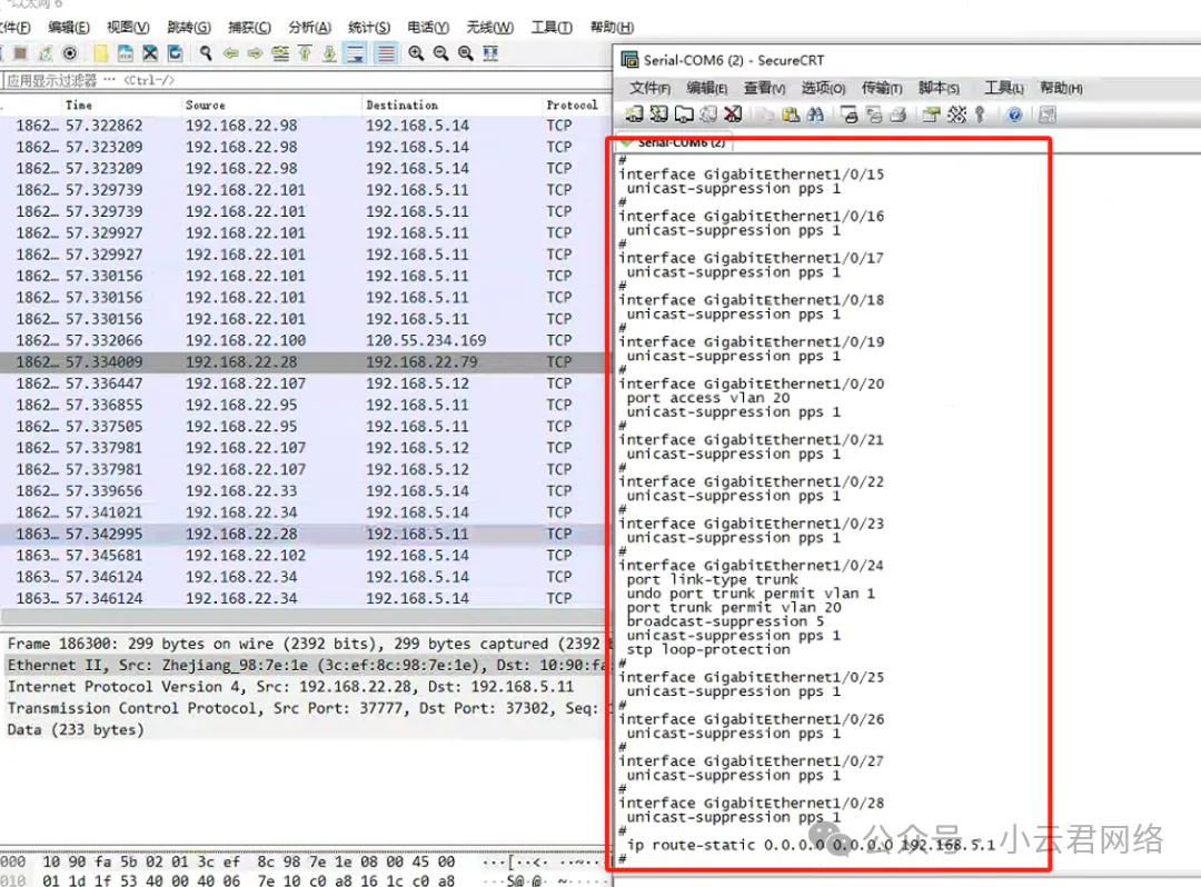 根本原因在于:VLAN20、21、22等业务网络中充斥着大量未知单播数据包,以每秒10万以上的速率泛洪,导致全网瘫痪,这是目前能够明确观察到的现象。