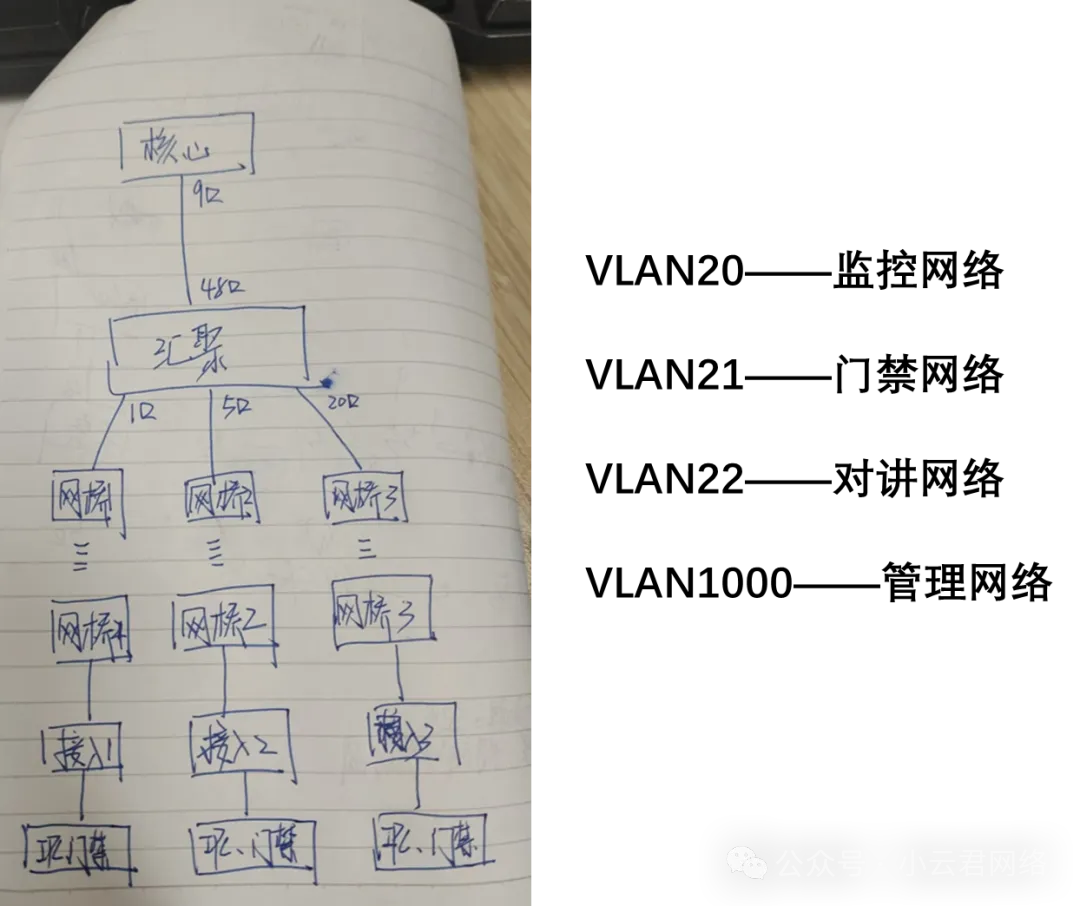 这是典型小区弱电智能化系统的网络结构示意图,简化版本如下: