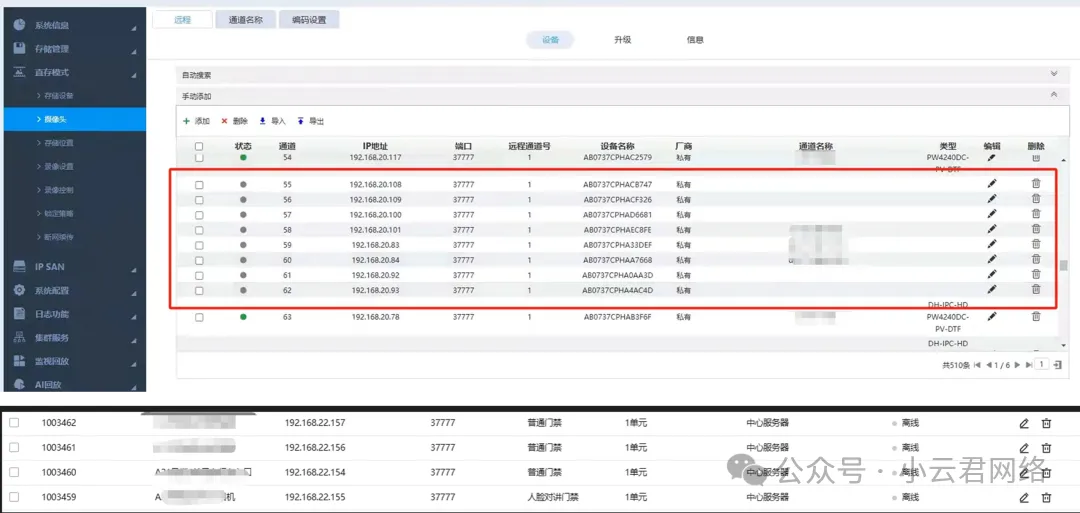 当问题出现时,大部分终端设备都会掉线,比如下图中的监控摄像头、对讲终端等设备都显示离线状态: