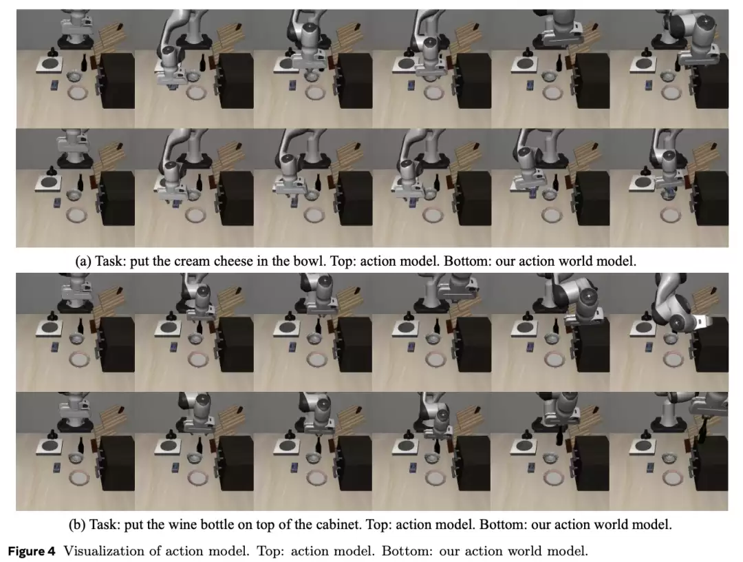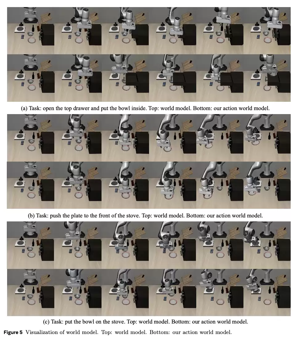 而融合动作的世界模型在这些关键场景中都生成了连贯且符合物理规律的后续状态。