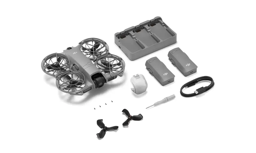 DJI Neo 2畅飞套装售价2499元,包含飞行器、数字图传模块、RC-N3遥控器、3块智能飞行电池、双向充电管家等更多组件;
