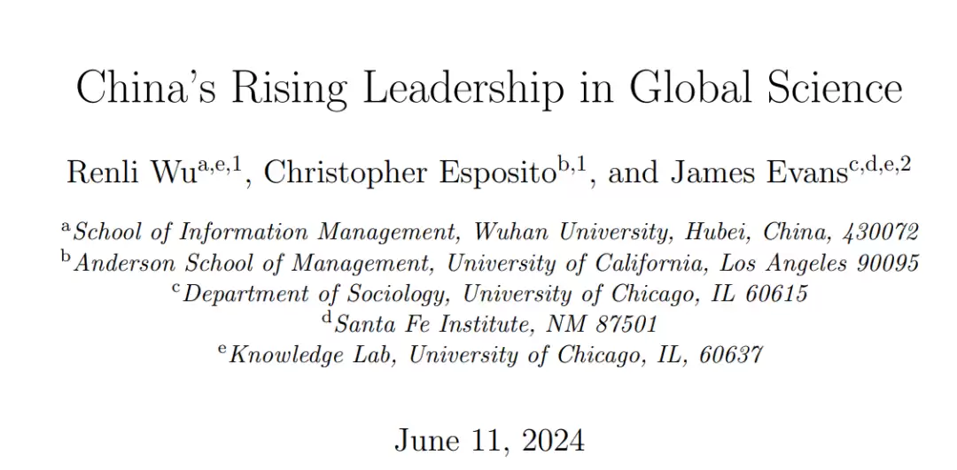 值得注意的是,这项研究的作者之一也来自中国。Renli Wu在论文中标注的单位为武汉大学信息管理学院与芝加哥大学Knowledge Lab联合培养。