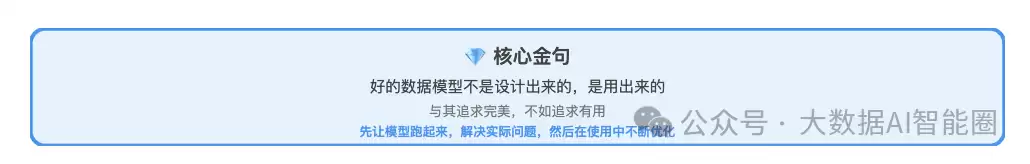数据建模没有标准答案,只有适合不适合。与其追求完美,不如追求有用。先让模型跑起来,解决问题,然后在使用中不断优化,这才是数据建模的正确姿势。