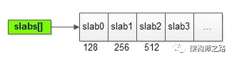 如上图所示,一系列slab分别管理128B、256B、512B等不同尺寸的chunk内存单元。