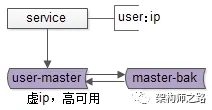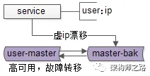 如图所示,两个互为主从的数据库实例共享同一个虚拟IP。