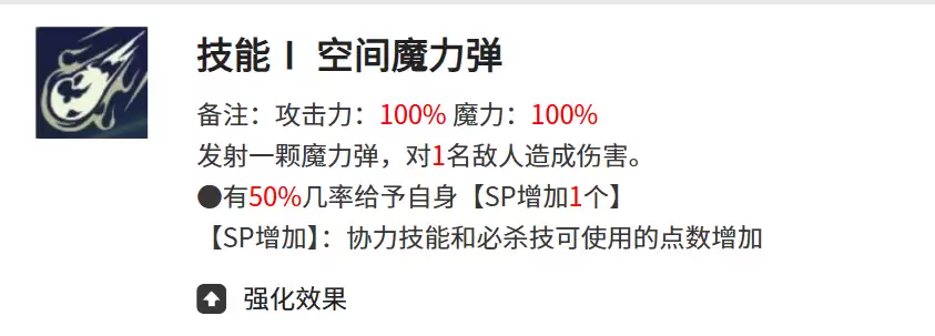 空间魔力弹与伯德家族的坚持构成了兰吉尔斯的核心主动技能。空间魔力弹是一个集攻击与魔力于一体的技能,能够对单个目标造成高达100%的伤害,命中时更有50%概率为自身附加1点SP。而SP点数正是解锁协力技与必杀技的关键资源,当SP累积后,兰吉尔斯的战术连招将会获得更多施展空间。