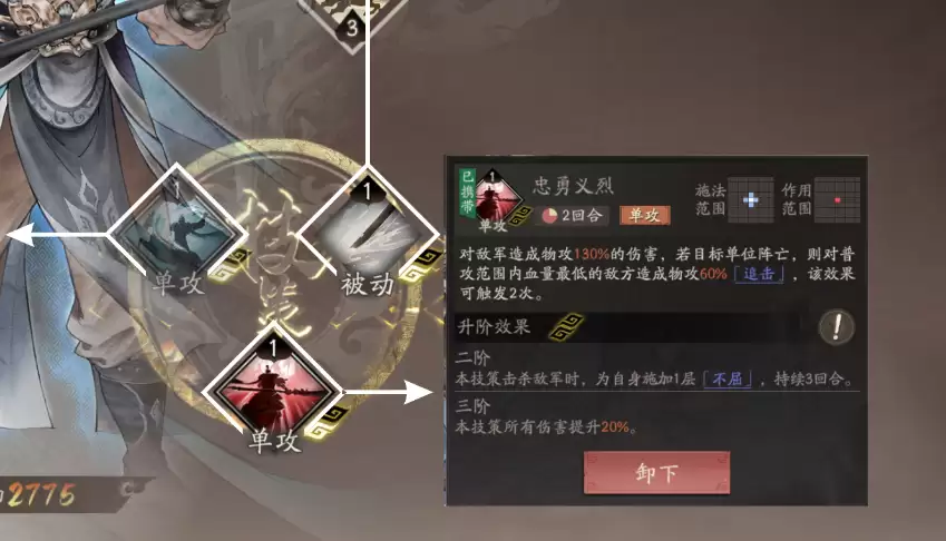 除了职业选择外,为夏侯惇配备合适的技能也至关重要。在游戏前期,建议大家携带“横刀跃马”和“突进”这两个技能,再配合“雪恨”作为被动技,基本上可以应对大部分战局。到了后期,比较推荐的技能组合是“忠勇义烈”和“力战”。其中“忠勇义烈”属于收割型技能,如果场上有其他主力输出角色,该技能能很好地协助完成清场任务。而“力战”则能够进一步提升夏侯惇的攻击和防御属性,是一个非常实用的辅助型技能。