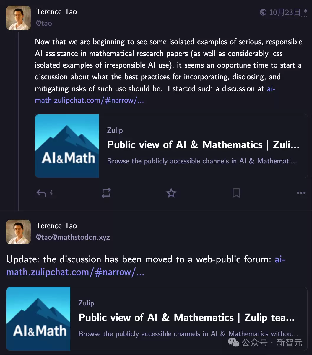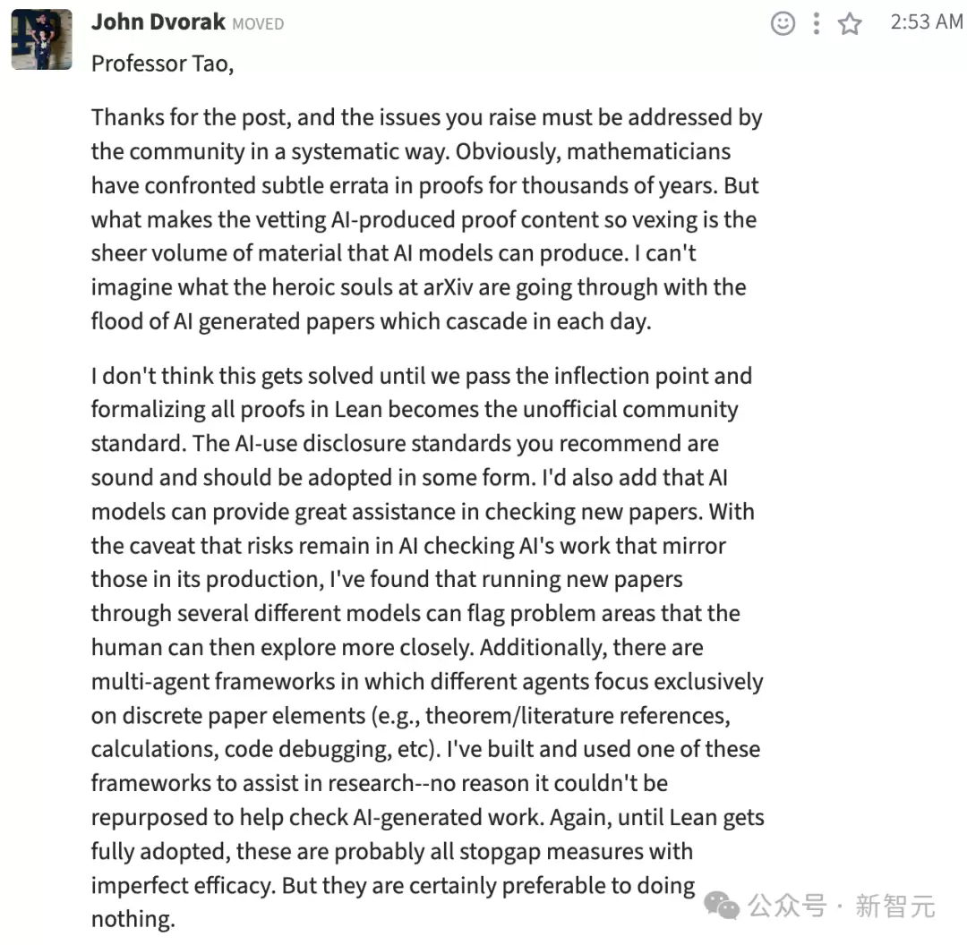 他认为现在正是启动相关讨论的最佳时机,探讨如何将AI最佳地融入数学研究,透明公开其作用方式,并建立风险缓释机制。