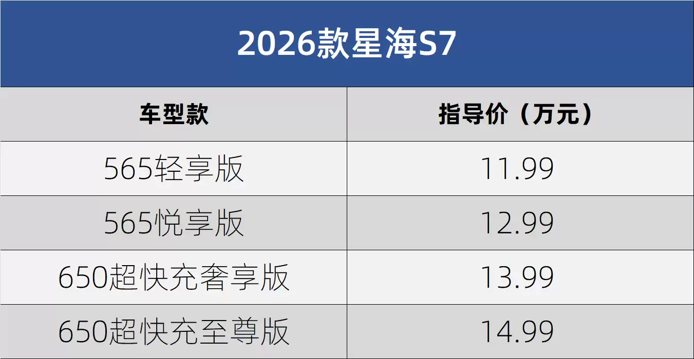 2026款星海S7纯电动轿跑亮相,11.99万起售