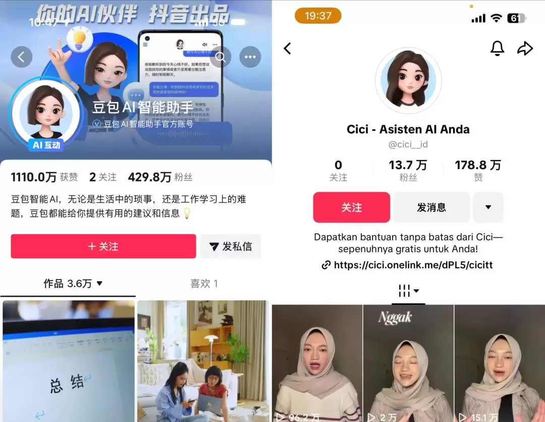 来源:豆包与Cici最新账号主页截图