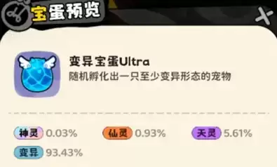 6、宝蛋分为三种:普通宝蛋会显示具体形态,只能开出对应形态的宠物。宝蛋Pro是当前冒险关卡的专属宝蛋,21关后可开出天灵,31关后能获得仙灵,51关后则有几率获得神灵。宝蛋Ultra为冒险80关后的稀有宝蛋,通常需要通过充值获取。