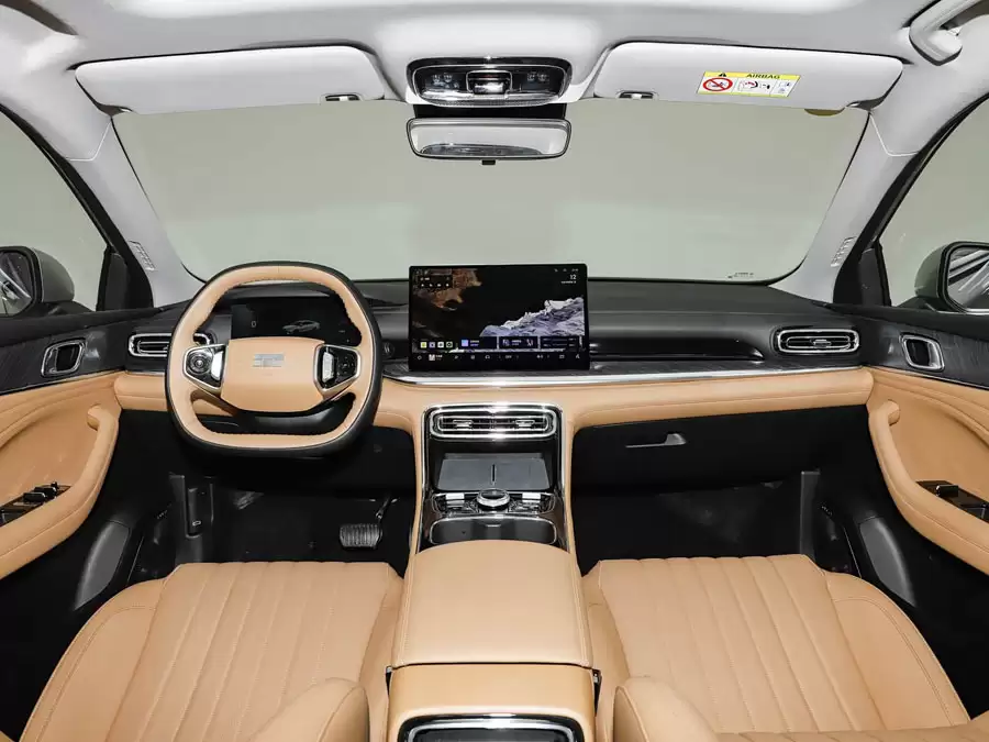 内饰空间提供澄湖映雪白、苏堤暖棕、烟雨墨黛三种配色方案。14.6英寸中控屏与10.25英寸液晶仪表组成双屏交互系统,8.9mm超窄边框设计搭配Flyme Auto智能座舱,内置7nm龙鹰一号芯片,配备16G内存和128G存储空间。座椅采用9层夹心设计的头等舱棉花糖零压座椅,软包覆盖率达80%,填充20mm记忆棉,前排座椅支持加热、通风和电动调节功能。