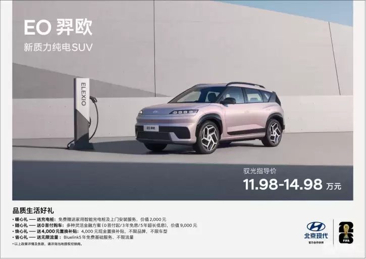 北京现代正式推出旗下首款基于纯电平台打造的SUV——EO逸欧,以11.98万至14.98万元的售价切入合资纯电市场,凭借722公里CLTC续航里程和多项越级配置引发广泛关注。这款车型被定位为“全球品质+中国技术”的融合之作,标志着北京现代在新能源领域迈出关键一步。