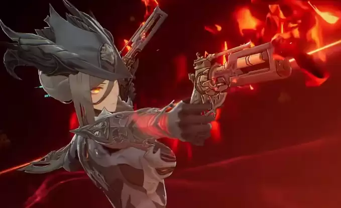 除了核心技能外,战斗中还可以使用"火药飨宴"这个特色技能。建议玩家在有队友掩护时再施展,因为角色发动技能后会保持原地不动,容易成为敌方集火目标。在队友的策应下发动该技能,可以切换成双枪模式,对战场上几乎所有敌人造成范围性打击。