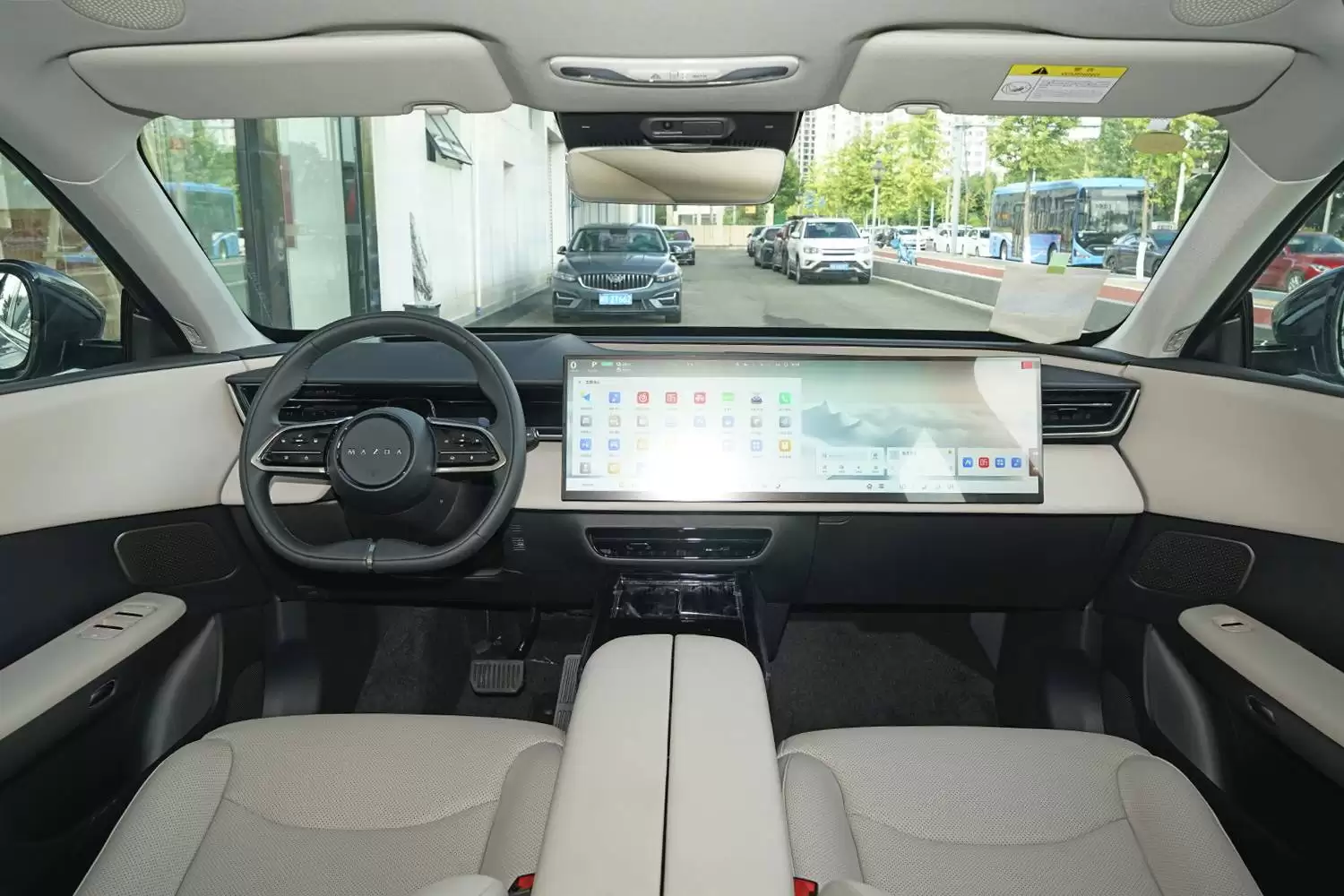 内饰方面,2026款马自达EZ-6同样亮点颇多。悬浮式14.6英寸中控屏与10.1英寸全液晶仪表盘的组合,为驾驶者带来清晰直观的信息显示与操作体验。50英寸AR-HUD抬头显示功能的加入,进一步提升了行车便捷性与安全性。车内还配备了14扬声器的索尼音响系统、64色氛围灯以及前排零重力座椅,共同营造出豪华舒适的驾乘环境。车机系统内置8155芯片,深度融合了空调、座椅、娱乐等多项控制功能,支持13种场景模式一键切换,并具备四音区语音唤醒功能,可一次性执行多条指令,让驾驶操控更加轻松便捷。