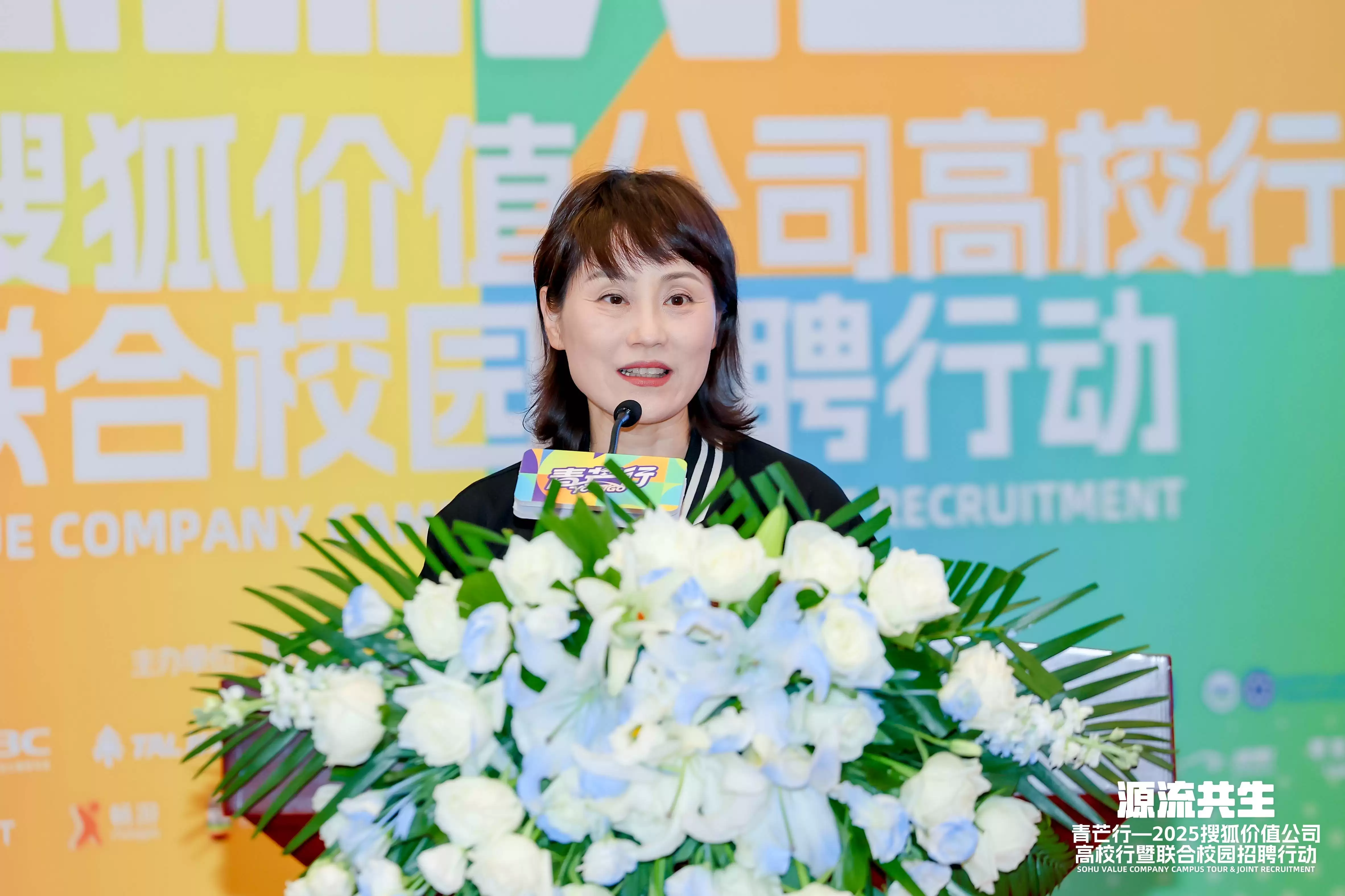 作为活动发起方代表,搜狐公司运营及人力资源副总裁张雪梅在致辞中强调,“青芒行”不仅仅是一场校园招聘会,更是一个覆盖人才选拔、职业规划、企业互动与文化传播的综合性平台。通过精准匹配岗位需求与学生能力,结合职业成长赋能与企业价值观传递,活动致力于为青年人才提供从就业到创业的一站式支持,助力其实现多维发展。