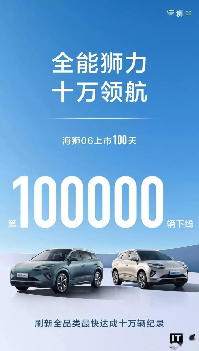 比亚迪海狮06上市百日售10万辆,创全品类最快纪录