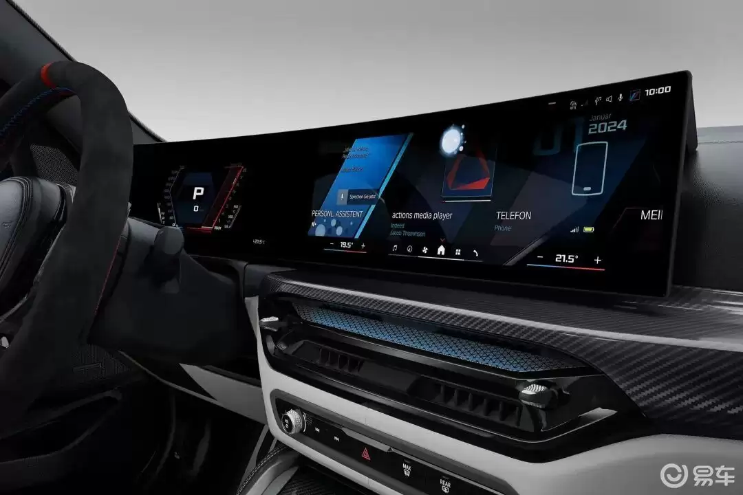 外观设计上,新款M3旅行版延续了M系列标志性的运动语言。前脸采用横置双线型进气格栅,搭配带隔断的进气口设计,强化空气动力学表现。日间行车灯由双C形升级为倒钩形LED光源,科技感与辨识度显著提升。车身侧面保留M系列宽体造型,高光黑色侧裙板与熏黑尾灯组形成视觉呼应,四出排气布局与碳纤维车身组件(包括进气口、后视镜壳、扩散器及车顶扰流板)共同营造出强烈的战斗气息。旅行车特有的优雅轮廓与实用空间,则为其增添了差异化竞争力。
