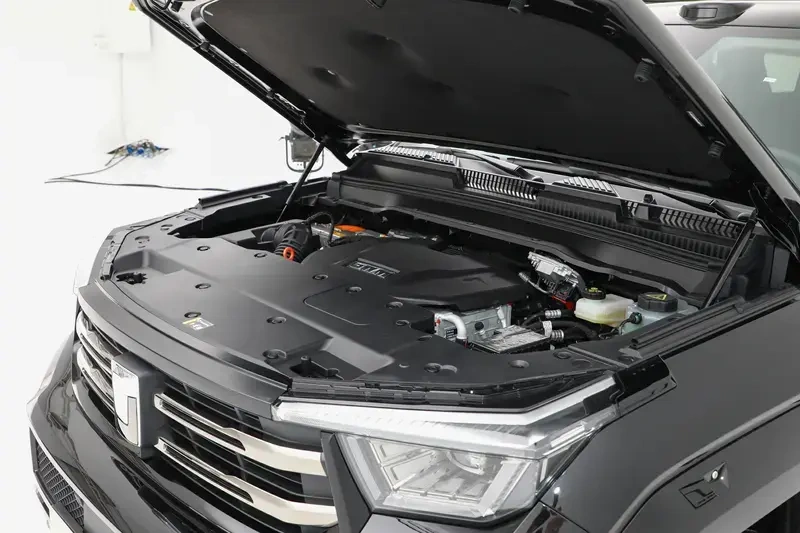 动力系统实现双平台布局,满足不同场景需求。Hi4-Z版本搭载2.0T发动机与P2、P4双电机组合,匹配3挡DHT加无级变速箱,系统综合最大功率达640千瓦,搭配59.05千瓦时电池组,WLTC纯电续航200公里,兼顾城市通勤的低能耗与轻度越野的脱困能力。Hi4-T版本则采用2.0T发动机加单电机配置,保留机械四驱结构与大梁底盘,搭载37.1千瓦时电池组,纯电续航105公里,更适合硬核越野场景。两款动力均提供185千瓦发动机最大功率,但电机配置与驱动形式形成差异化竞争。