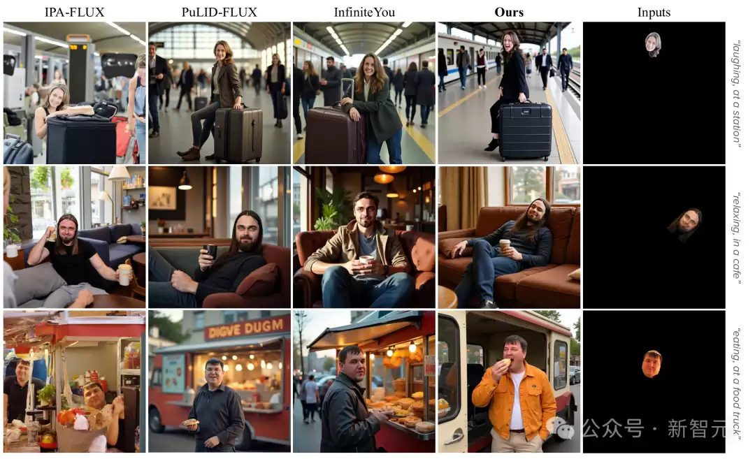 在保持身份一致的同时,能灵活生成不同表情与动作(如微笑、闭眼、吃饭等),完美避免了"贴脸"效应。