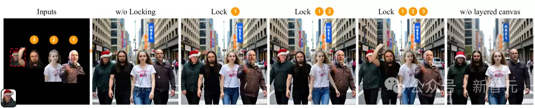 另外,在实验设置中,未锁定的层会根据已锁定的内容和整体场景上下文灵活调整,从而实现自然的协调与融合。