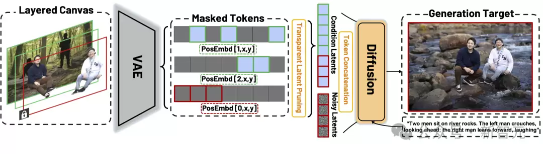 避免人物遮挡导致的信息丢失;通过透明潜裁切(Transparent Latent Pruning)显著降低计算量;支持任意数量的主体组合。类似于在Photoshop里,每一层就是一个独立的角色,可以随意移动、缩放或删除。