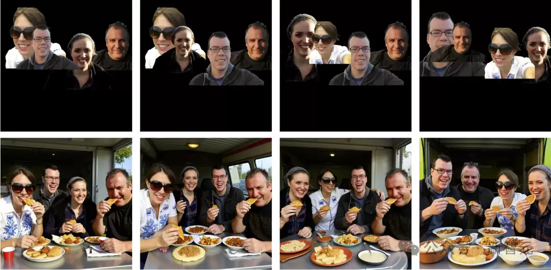 如果不使用分层画布,模型就只能以单张拼接图像作为条件输入,如图中"Inputs"一列所示。