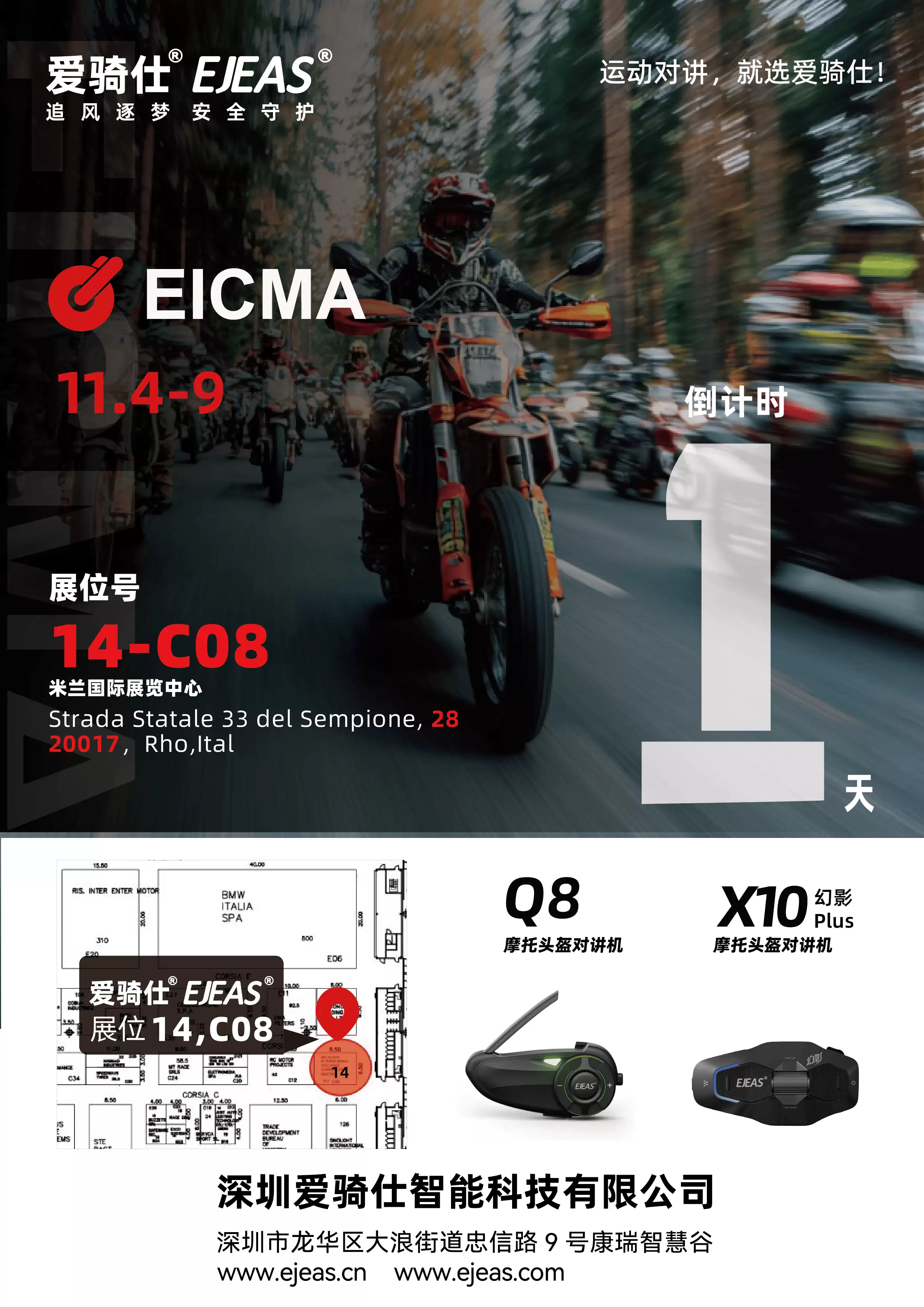 意大利米兰国际两轮车展(EICMA 2025)即将在近日盛大开幕,这场被誉为全球两轮车行业风向标的国际盛会,每年都会吸引来自世界各地的顶尖品牌与行业精英齐聚一堂。作为无线Mesh对讲技术领域的领军企业,EJEAS爱骑仕已确认参展,并将携多项创新成果亮相Fiera Milano展览中心14-C08展位,全面展现中国企业在高端通信技术领域的突破性进展。