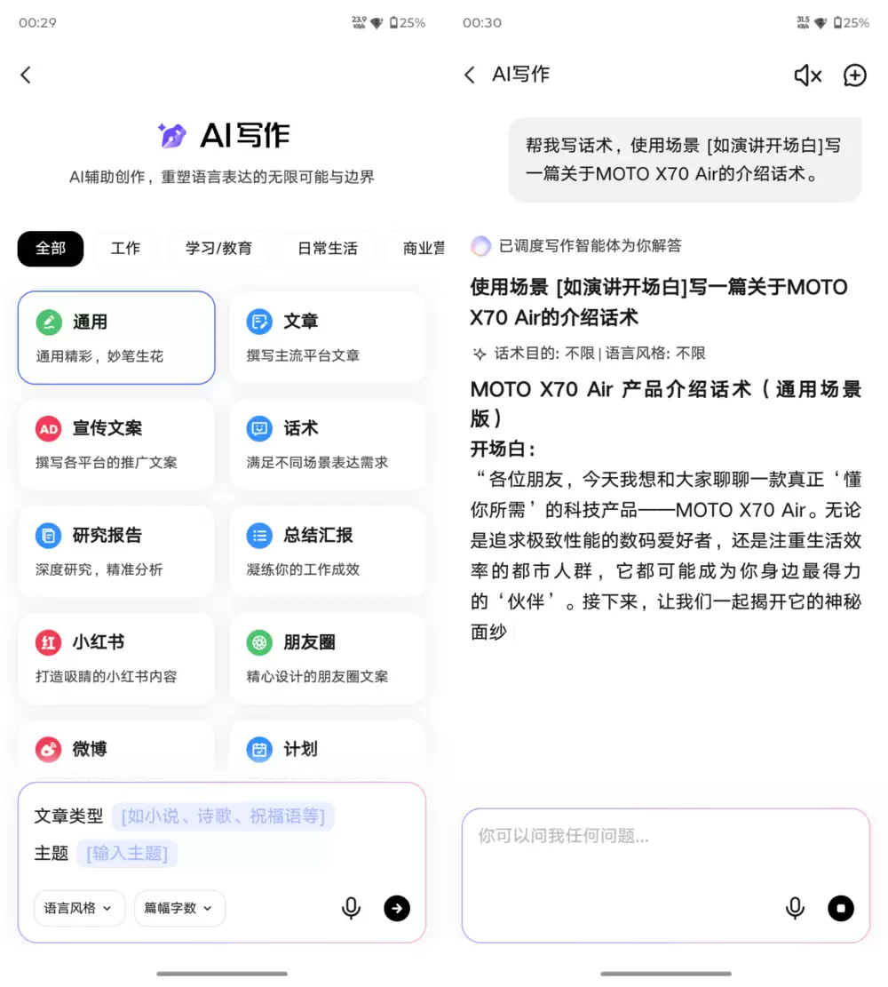 AI写作能智能辅助创作各种文案,无论是工作报告、邮件、朋友圈内容还是文章都能胜任。