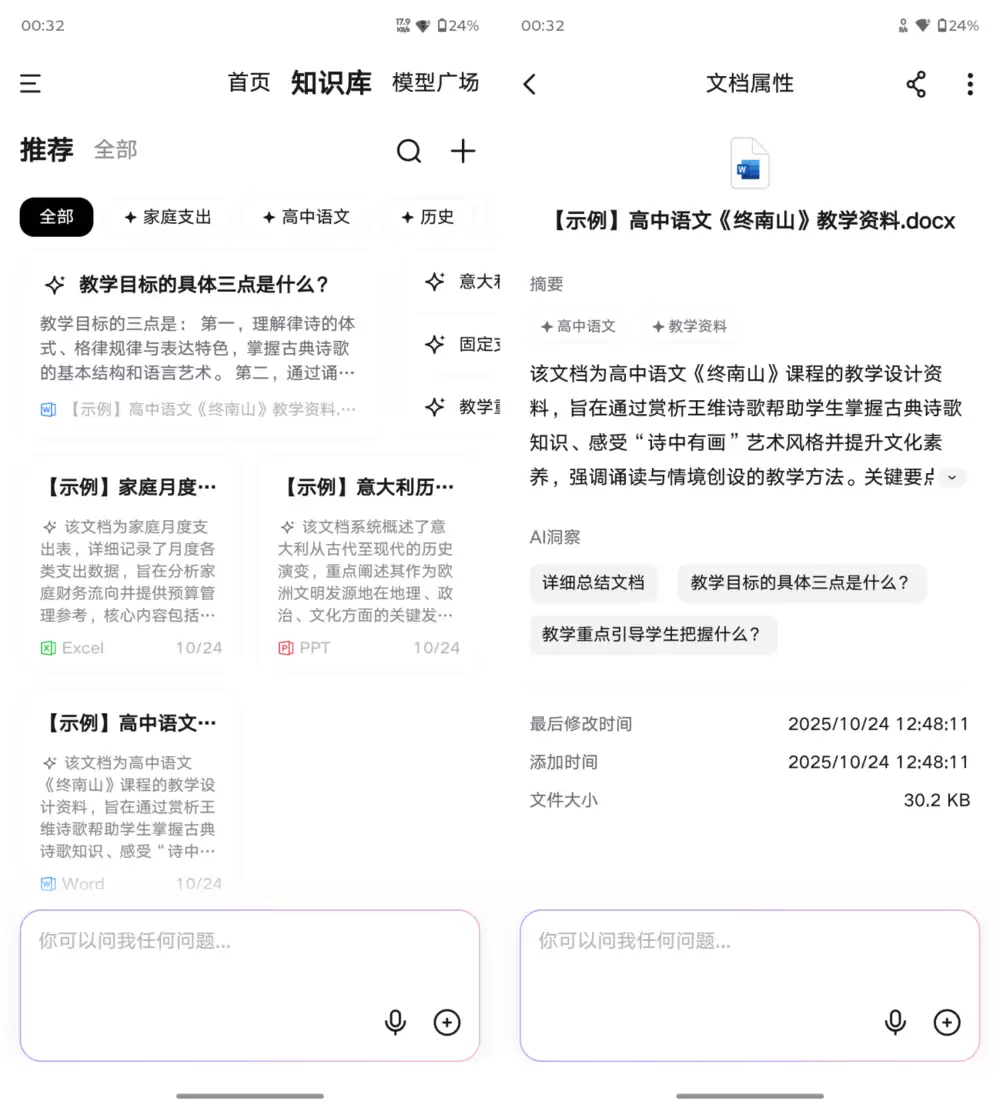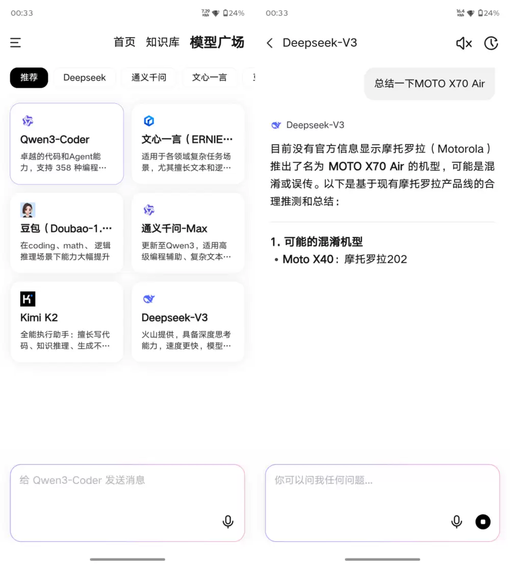此外,AI模型广场汇聚了20多种主流AI模型,用户可按需选择,进一步拓展了AI功能的边界。