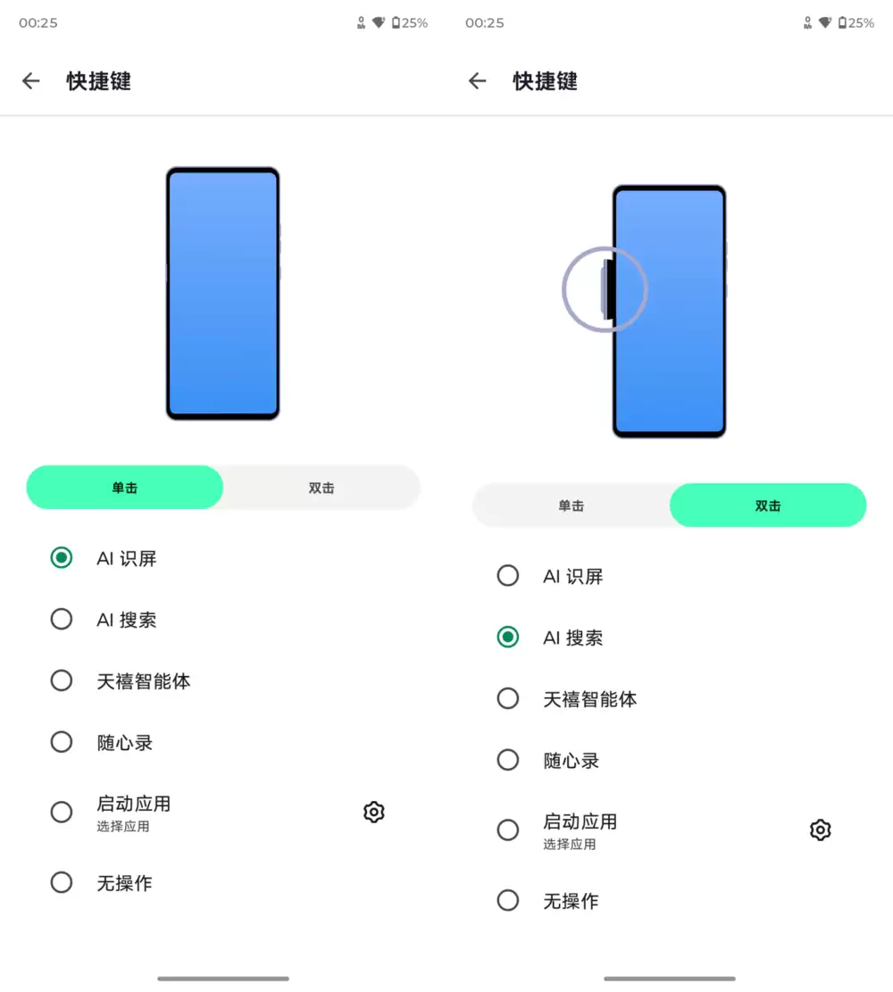 机身左侧的独立AI直达按键是一大亮点,按下即能响应,无需繁琐操作就能一键调用核心AI功能。用户还可以根据自身习惯自定义按键功能,可设置为AI看世界、随心扫、AI写作等多种实用功能,真正做到了按键直达需求。