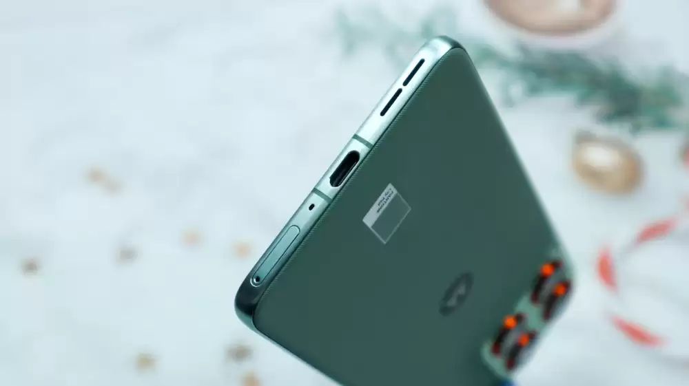 细节设计上,这款手机的R角圆润四边经过精细打磨,与手掌曲线完美贴合。长时间握持也不会感到累手。中框与背板形成的45°顺滑过渡角,让机身线条更显流畅自然,彻底告别了超薄机型常见的割手痛点。镜头装饰环首次采用金属材质打造,不仅提升了整机的质感与耐用性,还与Pantone高定色凌灰、青巧、韵绿形成高级撞色设计。视觉冲击力十足,无论是日常握持还是置于桌面,都极具辨识度。整机重心居中的设计让单手操作更加稳定,即使长时间使用也不易疲劳,真正做到了颜值与手感并存。