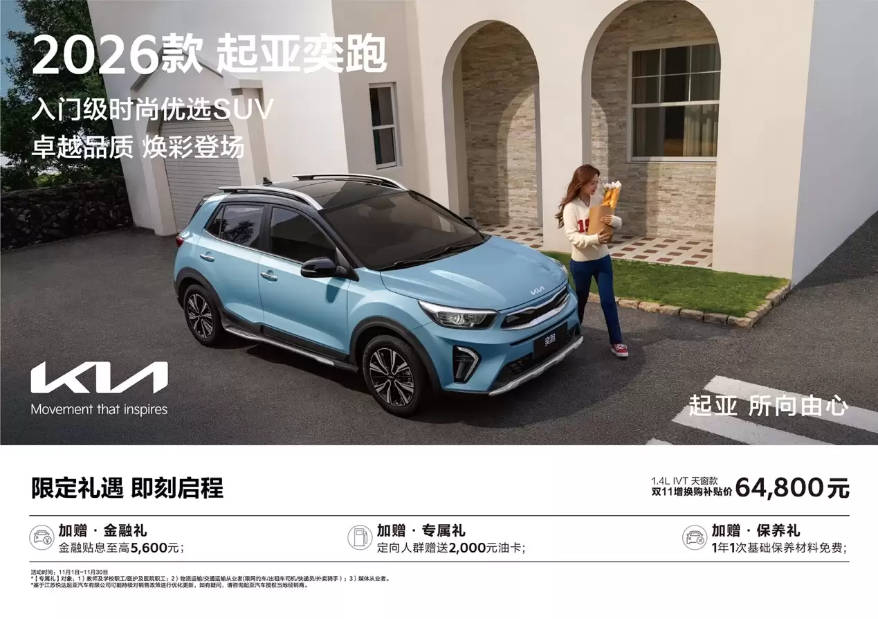 近日,悦达起亚正式推出2026款奕跑,作为年度改款车型,新车在外观配色、内饰设计以及配置方面进行了优化升级,共推出两款配置版本,最新指导价区间为6.98万元至8.38万元,其中高配车型补贴后售价6.48万元起。