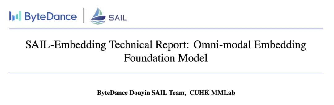 论文标题:SAIL-Embedding Technical Report: Omni-modal Embedding Foundation Model技术报告:https://arxiv.org/pdf/2510.12709HuggingFace:https://huggingface.co/BytedanceDouyinContent/collections